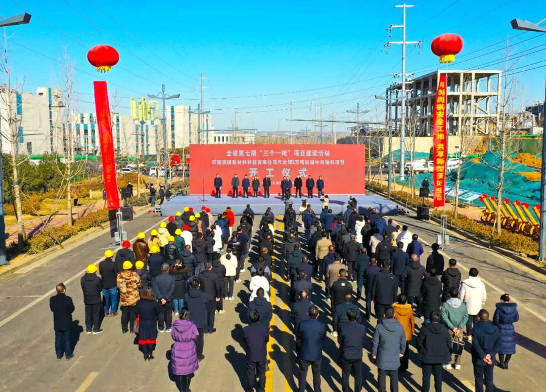 1月28日上午,全省第七期“三个一批”项目建设活动山城区分会场集中开工仪式在河南润棋新材料科技有限公司年处理3万吨钴铜中间物料项目现场举行。副市长、山城区委书记胡红军出席并宣布项目集中开工。区长关越主持开工仪式,区领导李红生、艾振军、刘志贤、王保清、蔡守业、直文峰、李杰新,河南润棋新材料科技有限公司董事长周炜奇,各镇(街道)、区直单位、辖区金融机构负责同志及施工单位代表参加。